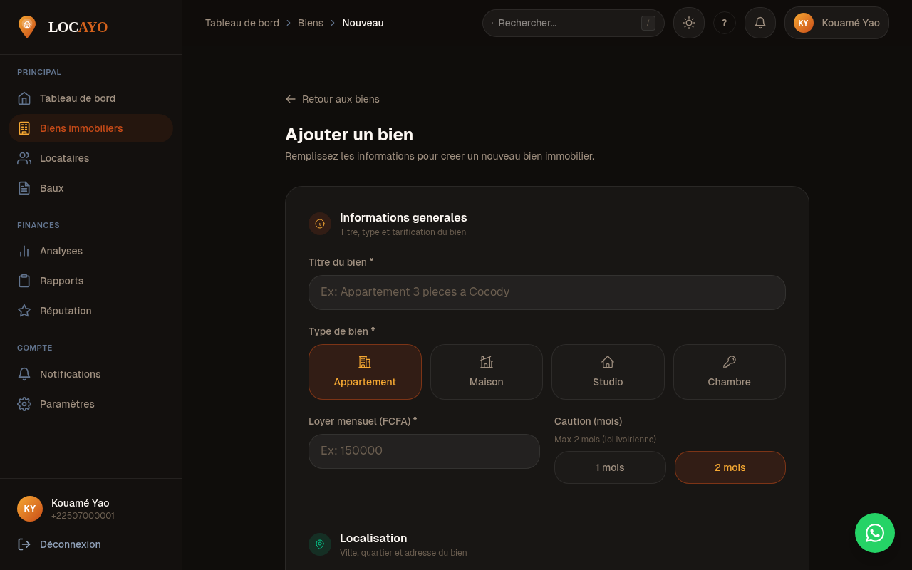 Ce guide vous accompagne etape par etape pour creer un nouveau bien immobilier sur Locayo. Le formulaire est divise en 5 sections.Pre-requis